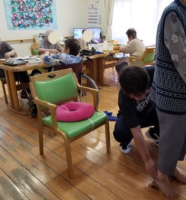 当社では入所型施設様へ訪問して、運動指導やフットケアなどのサービスを提供させていただいております。現在のところ8施設様と訪問リハケアサービスをご契約いただいております。